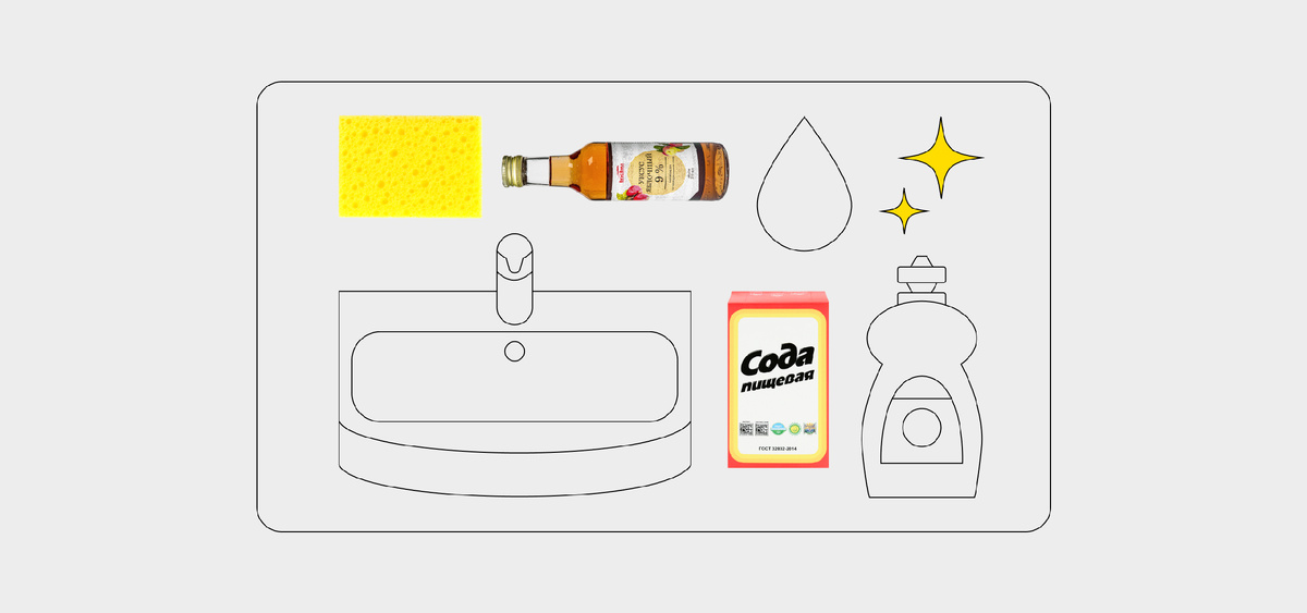 - Разбавленный уксус — идеален для борьбы с налетом от жесткой воды, но не рекомендуется для каменных и цветных покрытий.