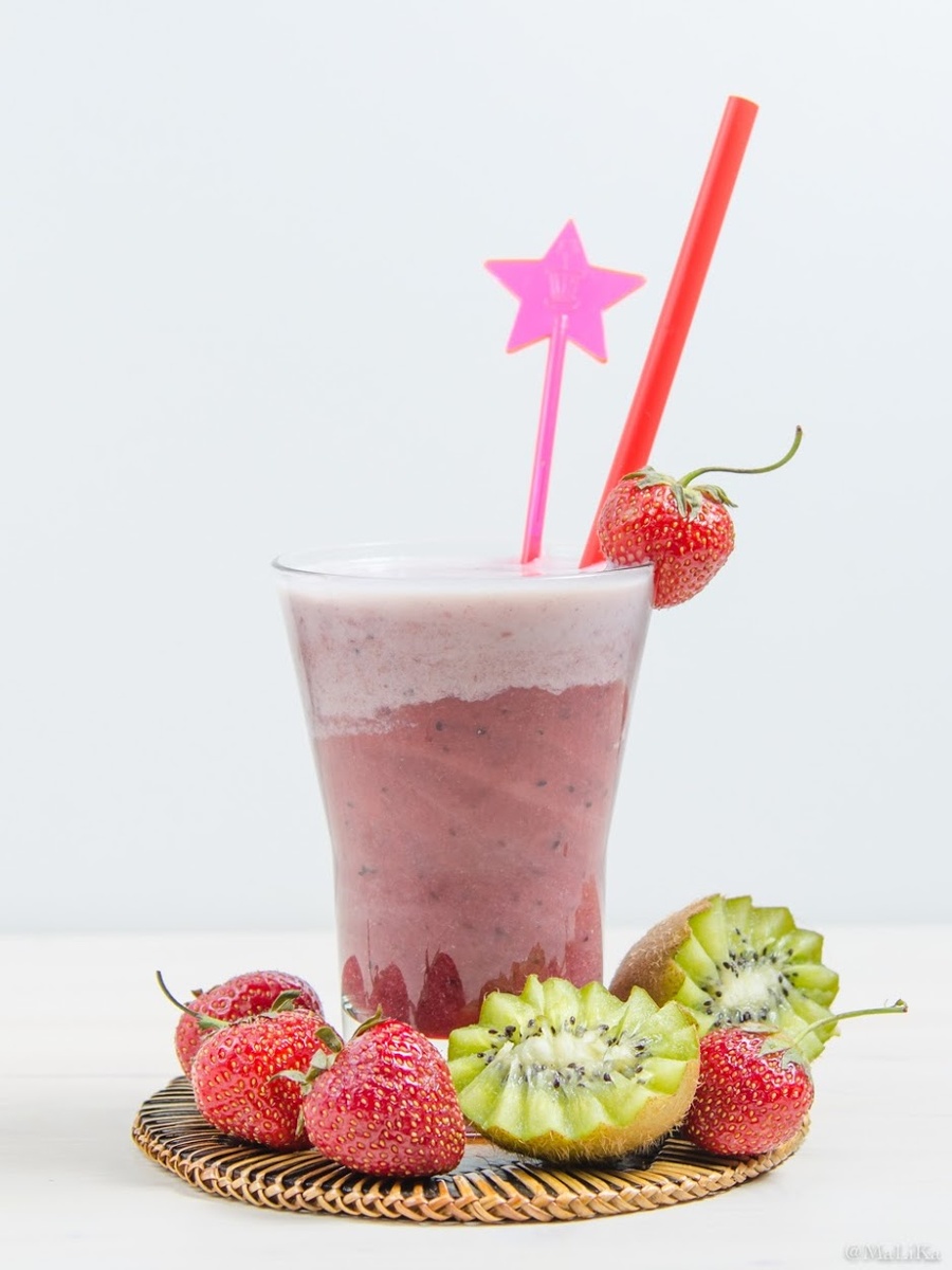 Смузи, приготовленный с клубникой, бананом и киви, можно сделать двумя способами. Первый вариант — просто смешать все ингредиенты в блендере. Второй способ включает создание двух слоев: сначала фруктово-ягодного пюре, затем молочно-бананового смеси. Этот метод не только вкусный, но и выглядит эффектно. При перемешивании ложкой, слои прекрасно соединяются, создавая красивые узоры.