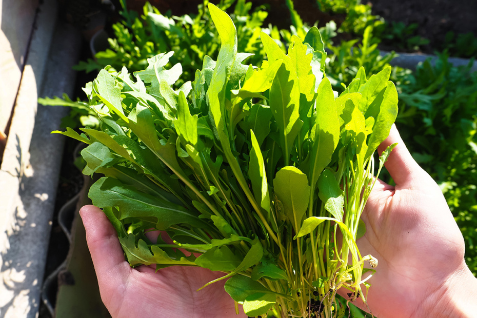 При выборе руколы стоит обращать внимание на ее цвет: свежие листья должны быть ярко-зелеными и без желтых пятен. Хранить зелень лучше всего в холодильнике, завернув в бумажное полотенце.