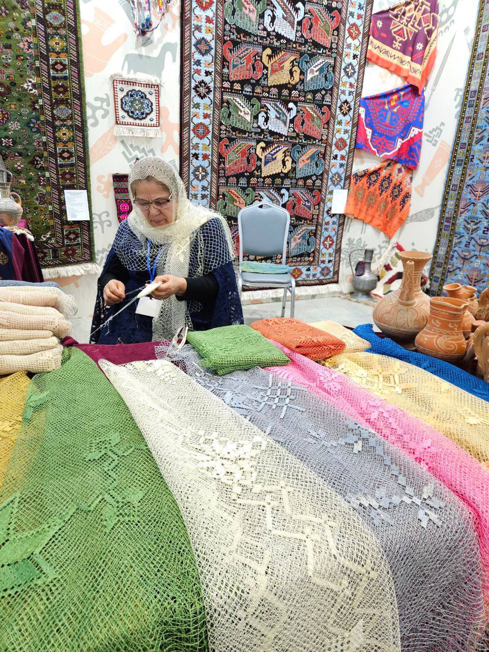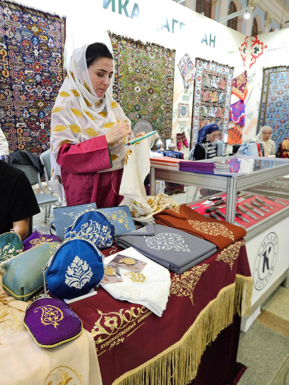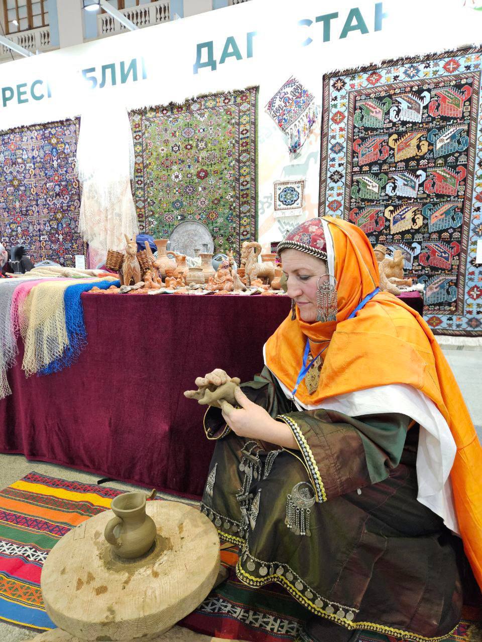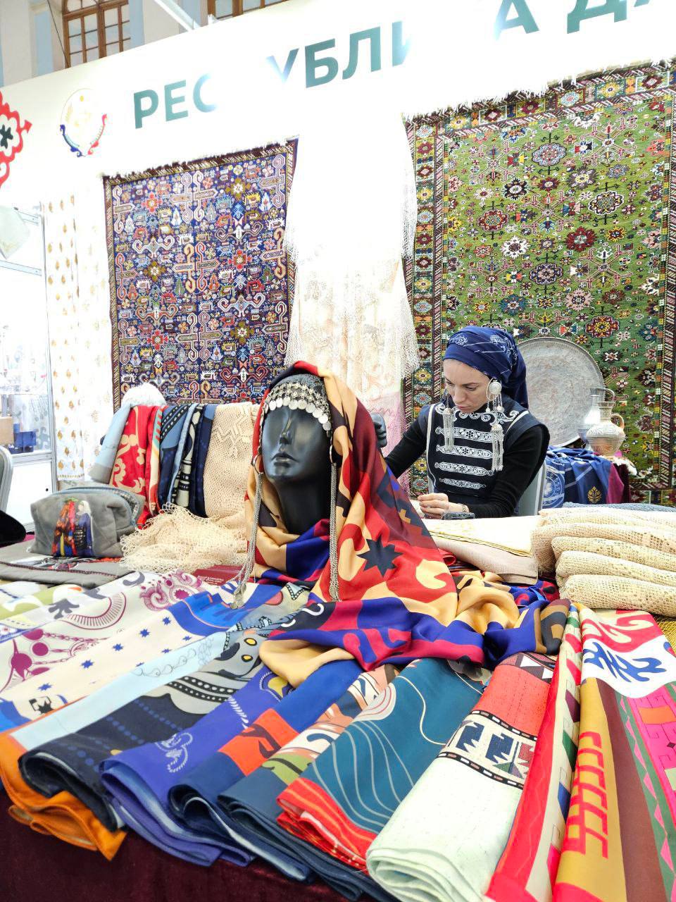 Экспозиция Республики Дагестан объединяет восемь субъектов народных художественных промыслов, включая индивидуальных предпринимателей и самозанятых, а также три ведущих предприятия отрасли: ООО ПП «Кизляр», ООО «Кубачинский художественный комбинат» и ООО «Межгюльская ковровая фабрика».
