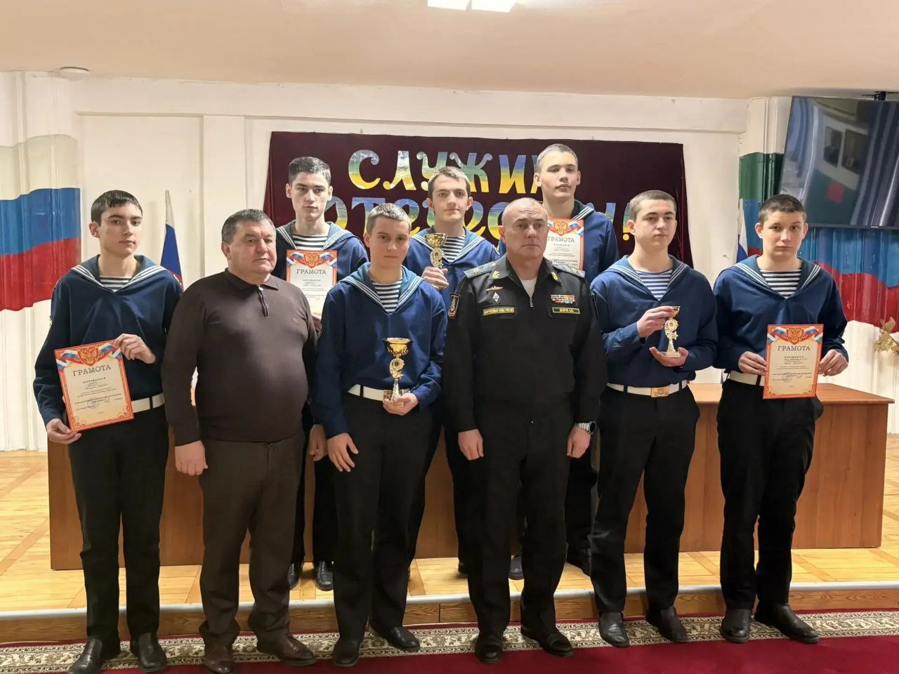 Награды победителям вручил почётный гость мероприятия — заместитель командующего Каспийской флотилией, контр-адмирал Анатолий Долгов. Конкурс стал подтверждением высокого уровня подготовки кадетов и важным этапом в их профессиональном становлении.
