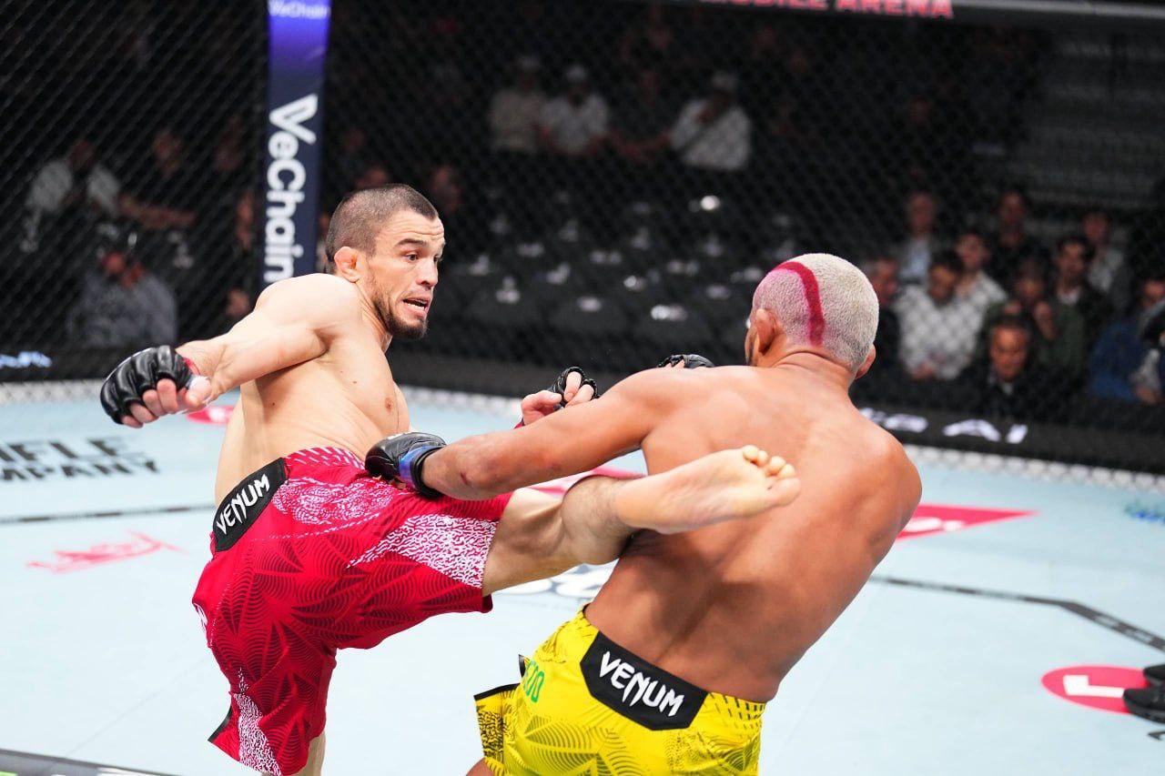 Умар Нурмагомедов одержал победу над бразильцем Дейвесоном Фигередо в поединке в легчайшем весе, выиграв единогласным решением судей.