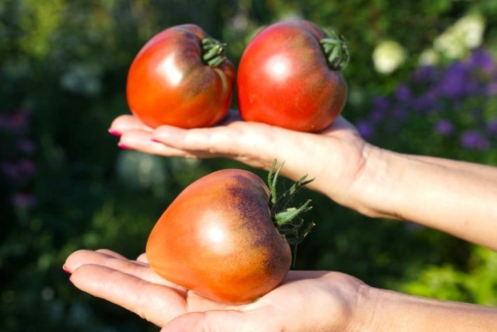 Кто бы мог подумать, что на грядке может оказаться не просто помидор, а настоящий десерт в цвете шоколадной вишни. Этот томат выделяется своим высоким кустом и крупными сердцевидными плодами, чья тёмно-бордовая кожура таит сладкую, почти без кислинки, мякоть. Взгляд на него строится не столько вокруг урожая, сколько вокруг удовольствия от вкуса и красоты плодов.
