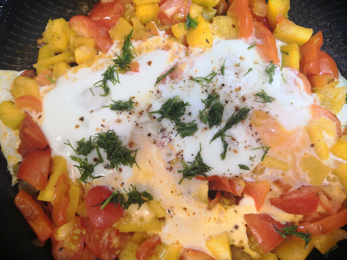 На первый взгляд утро пахнет привычной суетой, но простое сочетание овощей подслушивает ночную тишину кухни и превращается в спокойный ритуал завтрака. Нарезанные перец и кабачок быстро укрываются под каплей масла, плавно обжариваются до мягкости, после чего к ним добавляются помидоры. Вкус набирает глубину, а сковорода становится сценой для последнего аккорда — яиц, которые держат жар на медленном огне до нужной нежности. Завершает практичный штрих зелень, и утро уже выглядит по-домашнему уютным. Страва получилась без излишней суеты, но с полной, понятной пользой: блюдо собирается быстро, вкусы сбалансированы, а можно варьировать пропорции под настроение и наличие овощей. Продукты соседствуют друг с другом, не перегружая план дня и оставляя пространство для лёгкой смены блюд через сезон.
