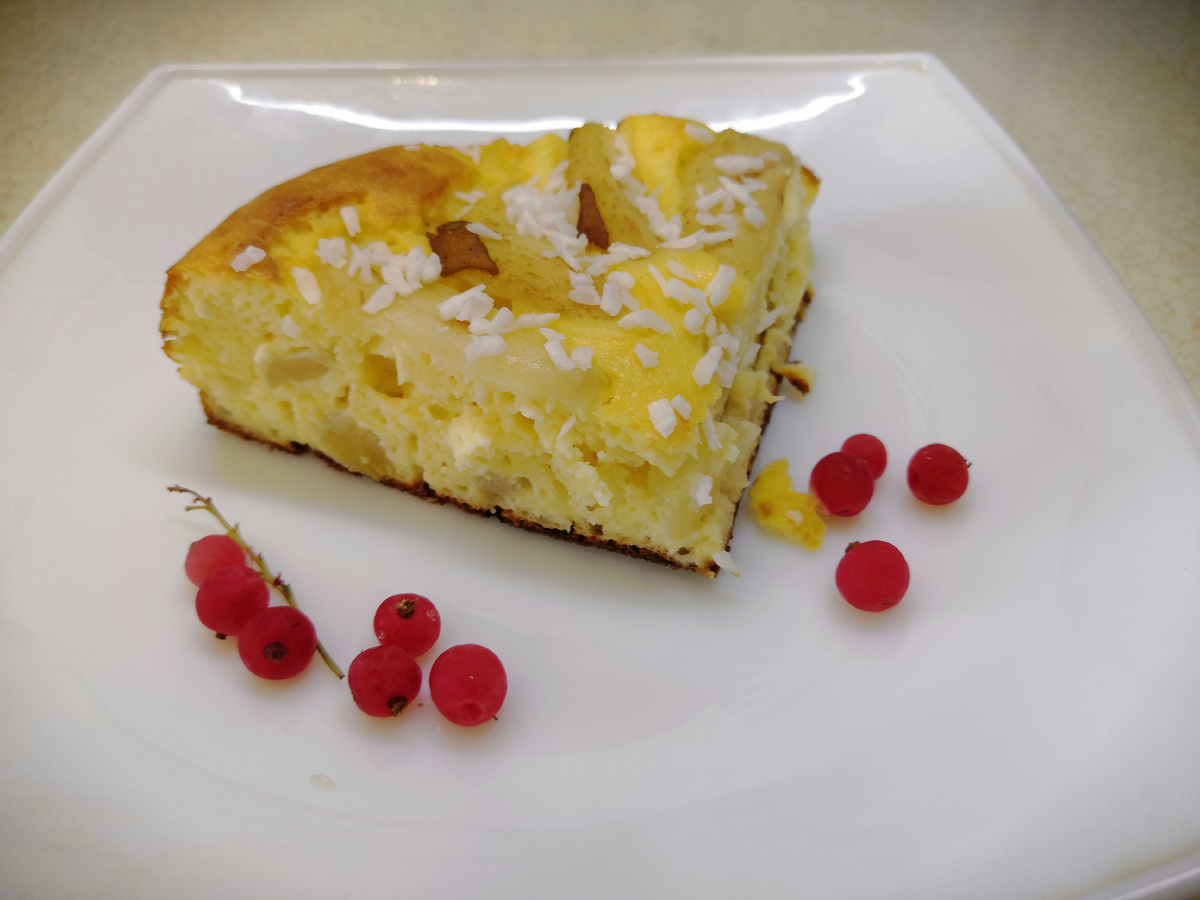 На руках минимальный набор продуктов и понятный порядок действий. Творожная основа держится за счёт яиц и небольшого количества муки, а груша придаёт естественную сладость и мягкость. Результат — светлая запеканка золотистого оттенка, которую можно украсить кокосовой стружкой для завершённого образа.