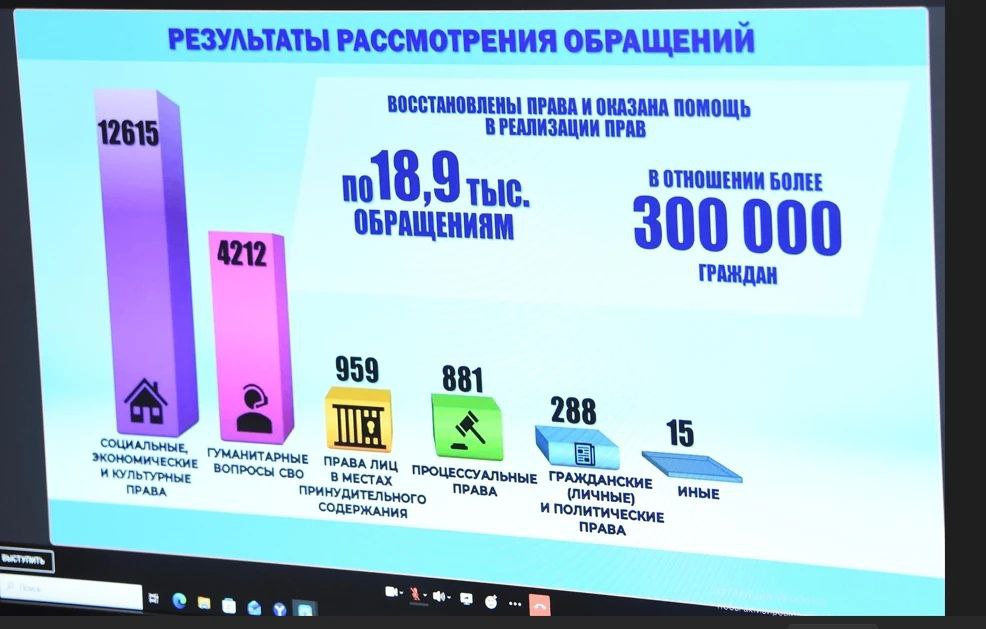 Уполномоченный по правам человека в РФ привела статистику обращений: в 2025 году в аппарат ведомства поступило 128 тысяч обращений. Более половины из них (72 тыс.) были связаны со специальной военной операцией, оказанием помощи участникам СВО, членам их семей или же жителям территорий, где проходила спецоперация, а также приграничных территорий. Говоря о ключевых направлениях работы, Москалькова классифицировала возвращение и помощь военнопленным, поиск пропавших без вести, обеспечение социальных гарантий для участников СВО и их семей, вопросы воссоединения близких и родных и ряд других задач. «По каждому из названных направлений был выстроен алгоритм действий», - отметила Татьяна Москалькова.