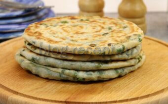 - Ингредиенты: мука, соль, кипяток, холодная вода, зелёный лук, растительное масло.