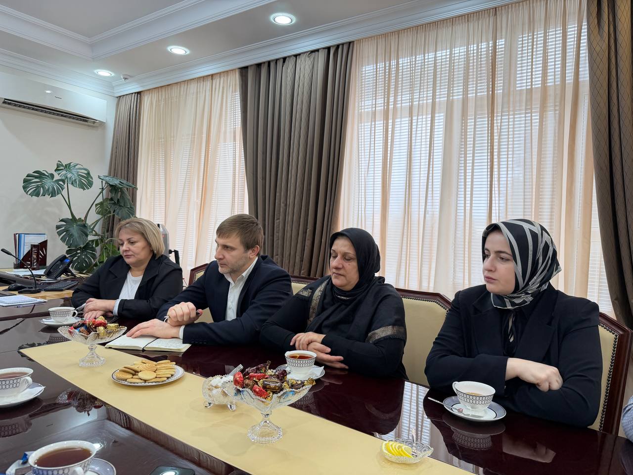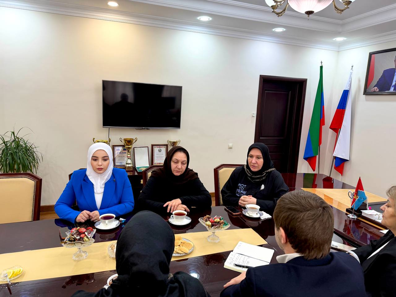 Сегодня в администрации г. Каспийск состоялось совещание с участием главы города Бориса Гонцова и представителей МОО "Сила матерей". В частности, присутствовали руководитель выставки «Наследие Героев» Сабика Гаджиева, основатель проекта «Сильные Духом» Мехрибан Муслимова