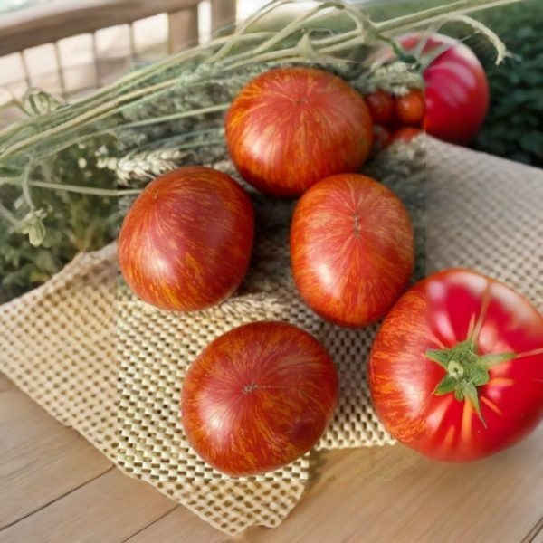 «Брендивайн полосатый» — это один из самых известных и старинных сортов, относящихся к группе Брендивайн. Эта группа была выведена в США в конце XIX – начале XX века. Известен своим эталонным вкусом среди биф-томатов, этот сорт является естественной мутацией классического розового Брендивайна и не является гибридом. Это позволяет огородникам собирать и сохранять семена, чтобы в последующие сезоны получать такие же вкусные плоды.