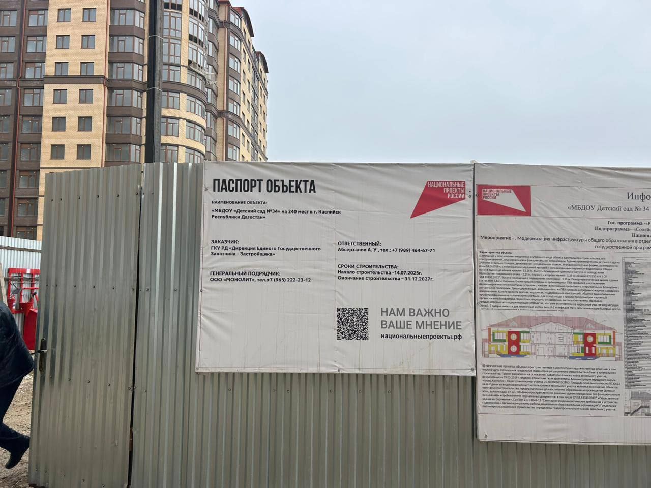 Глава Каспийска проинспектировал строительство нового детского сада на улице Кавказской