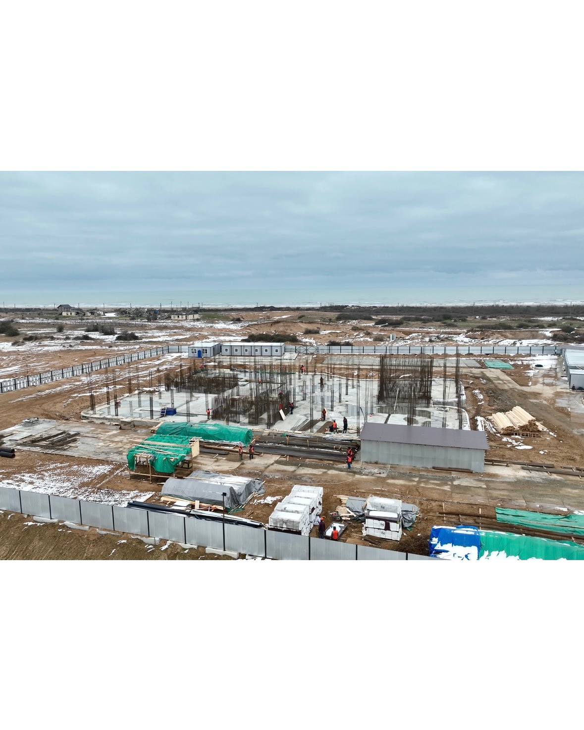 В активной фазе стройки сейчас находится смысловое ядро курорта четырехэтажный МФЦ площадью 7,5 тысяч квадратов. Выполнены земляные работы, завершено бетонирование фундаментной плиты и ведется ее гидроизоляция, идет армирование колонн и стен первого этажа, кроме того, ведутся подготовительные работы перед заливкой бетона первого этажа.