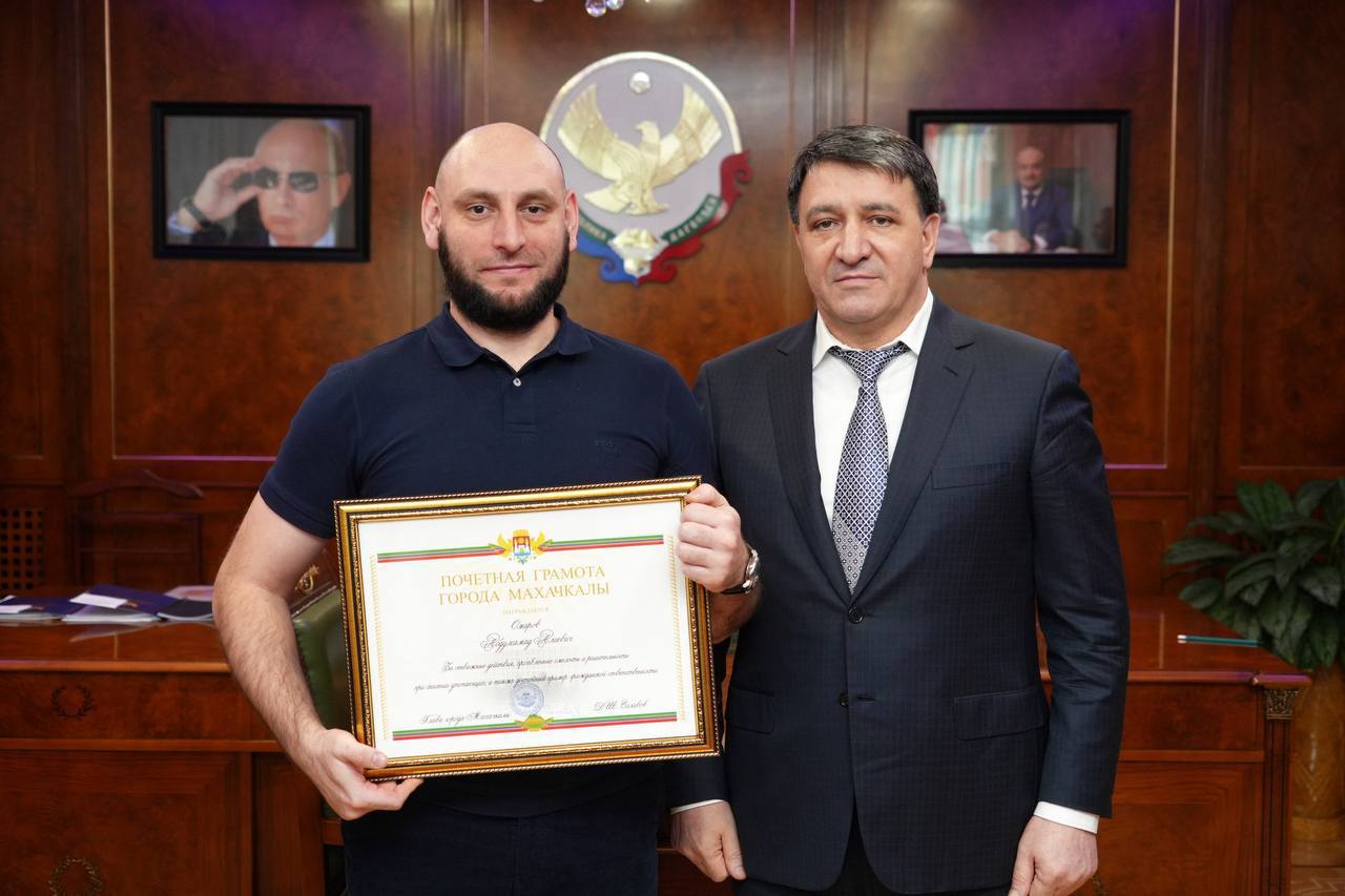 Почётными грамотами города были награждены Алимирза Наврузбеков, Абдулсамад Омаров и Ассад Магомедов, которые спасли девушку с ребёнком из автомобиля, упавшего в канал имени Октябрьской революции.