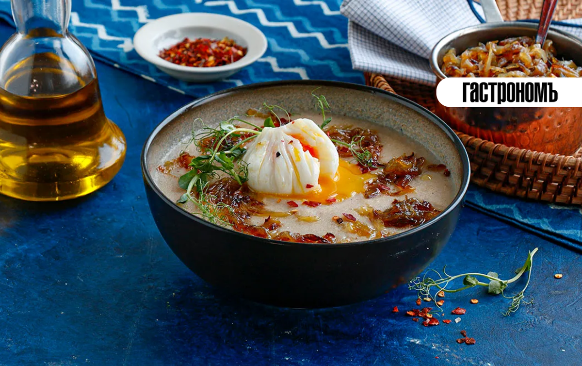 Рисовая каша с яйцом пашот и нори