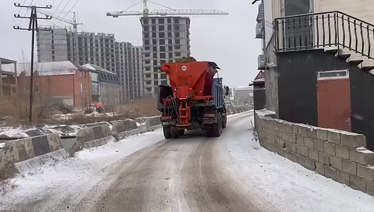 Специализированная техника УЖКХ и МБУ «Благоустройство» реализуют антигололедную программу.