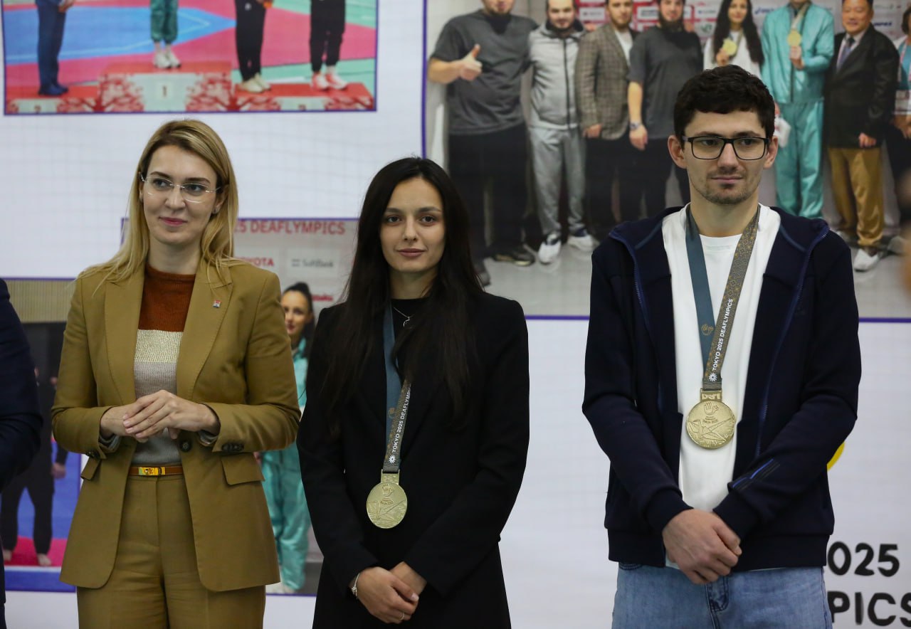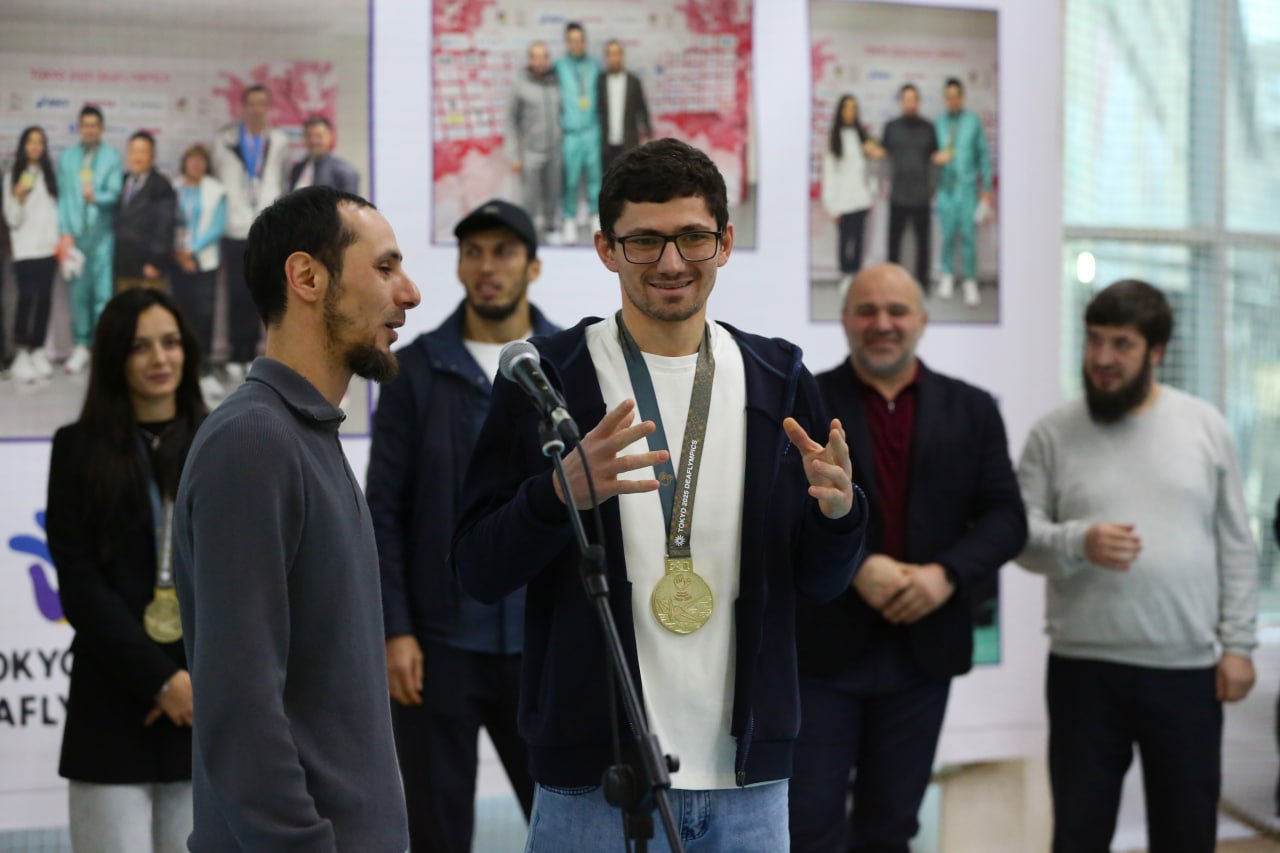 На стадионе «Труд» в Махачкале состоялось чествование дагестанских тхэквондистов – триумфаторов Сурдлимпийских игр в Токио Мадины Сатушиевой и Шамиля Исакова.