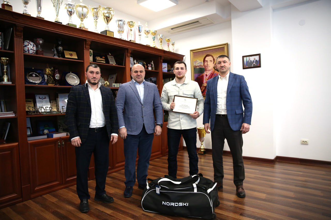 Сажид Сажидов провел встречу с воспитанником СШОР им. Гайдарбека Гайдарбекова Адамом Абулайсовым, который вернулся домой из зоны СВО.