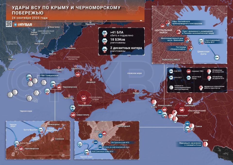 Вчера с полуночи и до позднего вечера украинская сторона вела продолжительную массированную атаку на Крым и Краснодарский край с использованием безэкипажных катеров и БЛА.Масштабы удара: Основной удар пришелся по Краснодарскому краю, где в общей...