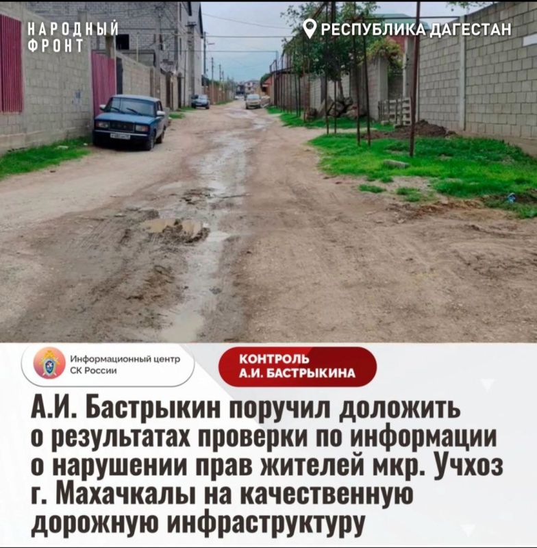 После вмешательства Народного фронта Бастрыкин поручил провести проверки по факту нарушения прав жителей микрорайона Учхоз в Махачкале.Основанием стала информация от Народного фронта о ненадлежащем состоянии дорог и инфраструктуры.Исполнение...